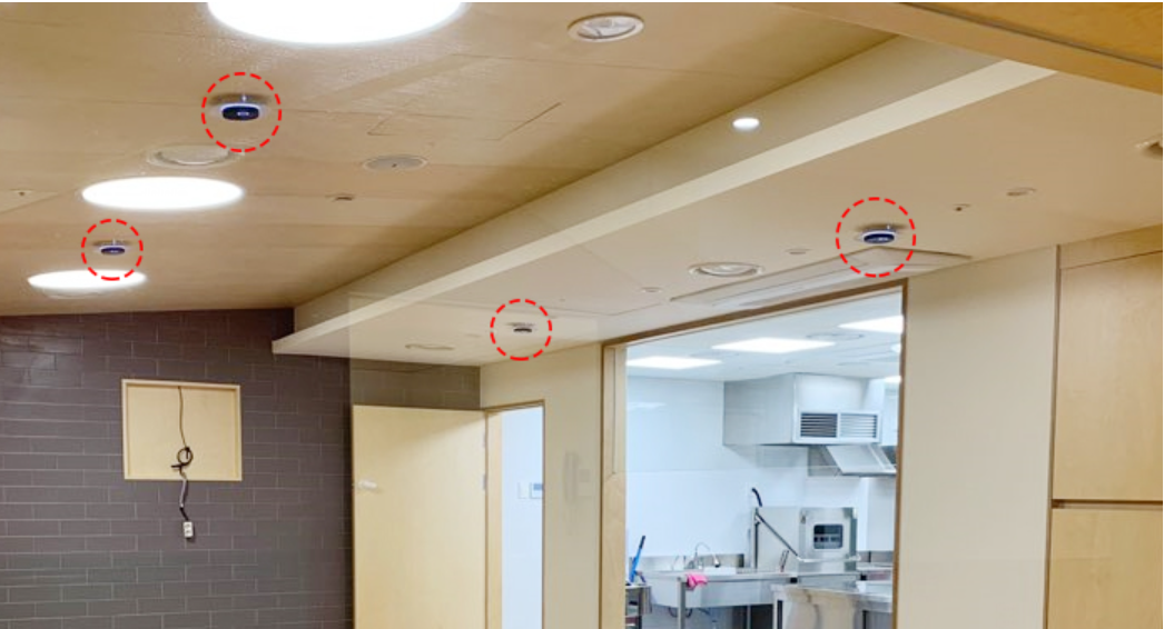 为给孩子们提供更优质和舒适的活动环境,在托儿所内部安装了弥散氧